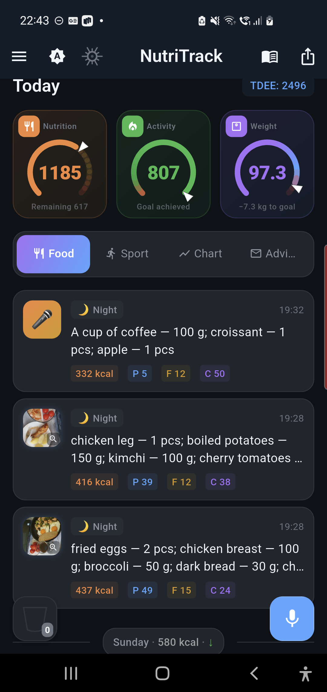 Finally no need to search every product! I just say what I ate. Down 3 kg in a month.